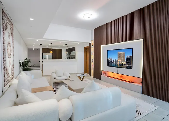 O apartamento de 2 quartos fica no bairro Palm Jumeirah de Dubai, a 6 km do PArque Aquático Wild Wadi. O Pj- Stylish Marina Residences 2 Apartment Palm Jumeirah Sea View Pool Access Parking está localizado a caminhada de 30 minutos da Cidade Multimédia Dubai.